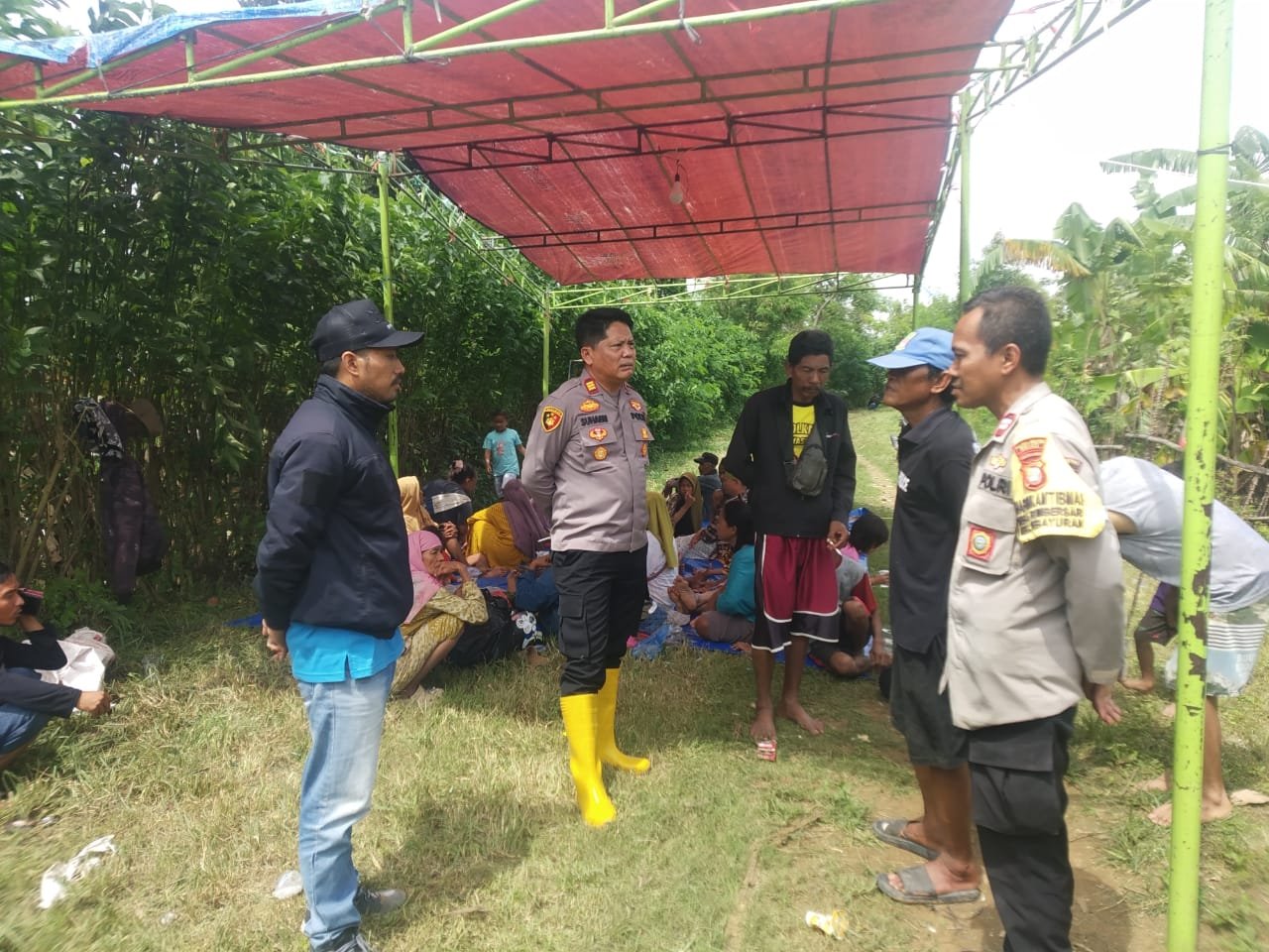 Kehadiran Kapolsek Pebayuran dalam kesempatan tersebut sekaligus memberikan bantuan kemanusiaan berupa beberapa dus mie instan kepada warga yang saat ini berada di tenda darurat pengungsian.